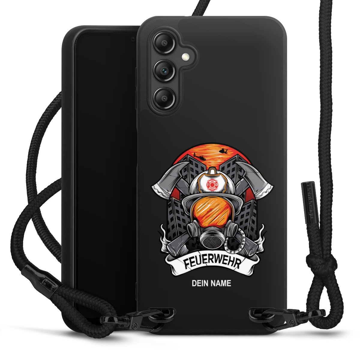 The matt black silicone case is made of flexible TPU (thermoplastic polyurethane) and offers robust protection. The durable, unbreakable material makes the cover flexible and dimensionally stable at the same time. The matte surface makes your design stand out more and is less susceptible to fingerprints and dirt. The stylish trend accessory fits comfortably in the hand and is perfectly complemented by the fabric (polyester) mobile phone strap. The braided fabric strap is approx. 1.70 metres long with a diameter of approx. 0.5 cm. Due to the special knotting technique, the length of the strap can be adjusted by simply pulling it, so that you can adapt it individually to your wishes. The practical case to wear around your neck is available with the fabric strap in black. As a little icing on the cake, we have provided the strap with a chic metal fastener in matt black. The strap is securely fastened to the case with loops made of high-quality genuine leather and press studs. The ends of the fabric strap are covered with metallic end caps and thus protected from fraying.