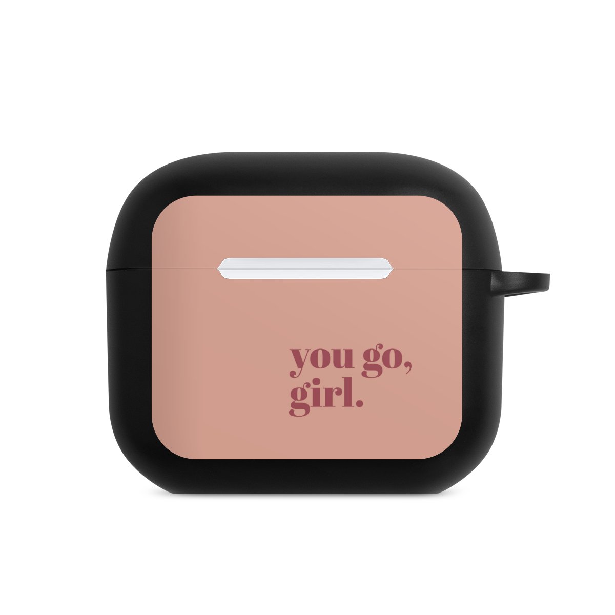 The AirPods Case is your handy and safe storage for your AirPods or AirPods Pro. Thanks to the attached snap hook you can easily add the AirPods Case to your phone necklace, keychain or bag. Wireless Charging is still possible. The case is made from TPU, a very long lasting and shatterproof material. The case is available in black and white. The best part about the case: you can customize the frontside with your own designs or one of our pre-made prints!