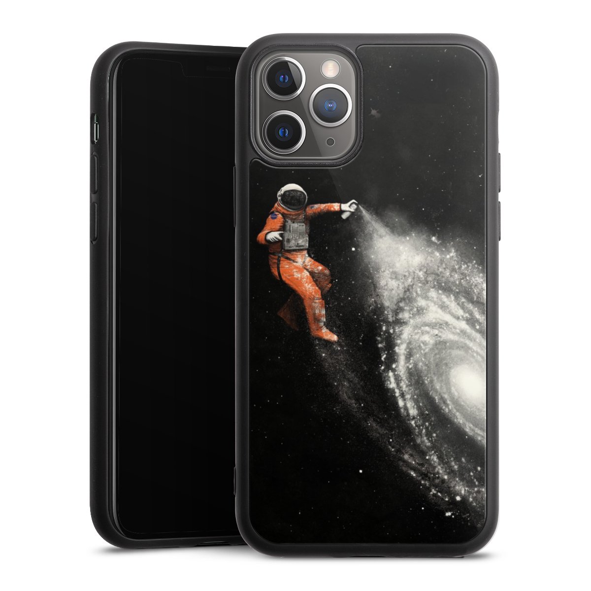 We print your design on the back of the glass inlay and then connect it firmly to the silicone case ,so that nothing sticks out and everything looks like it was cast from one piece. In addition, the sturdy glass element is protected from scratches by an additional coating and ensures a slight reflection on the shiny print image.
