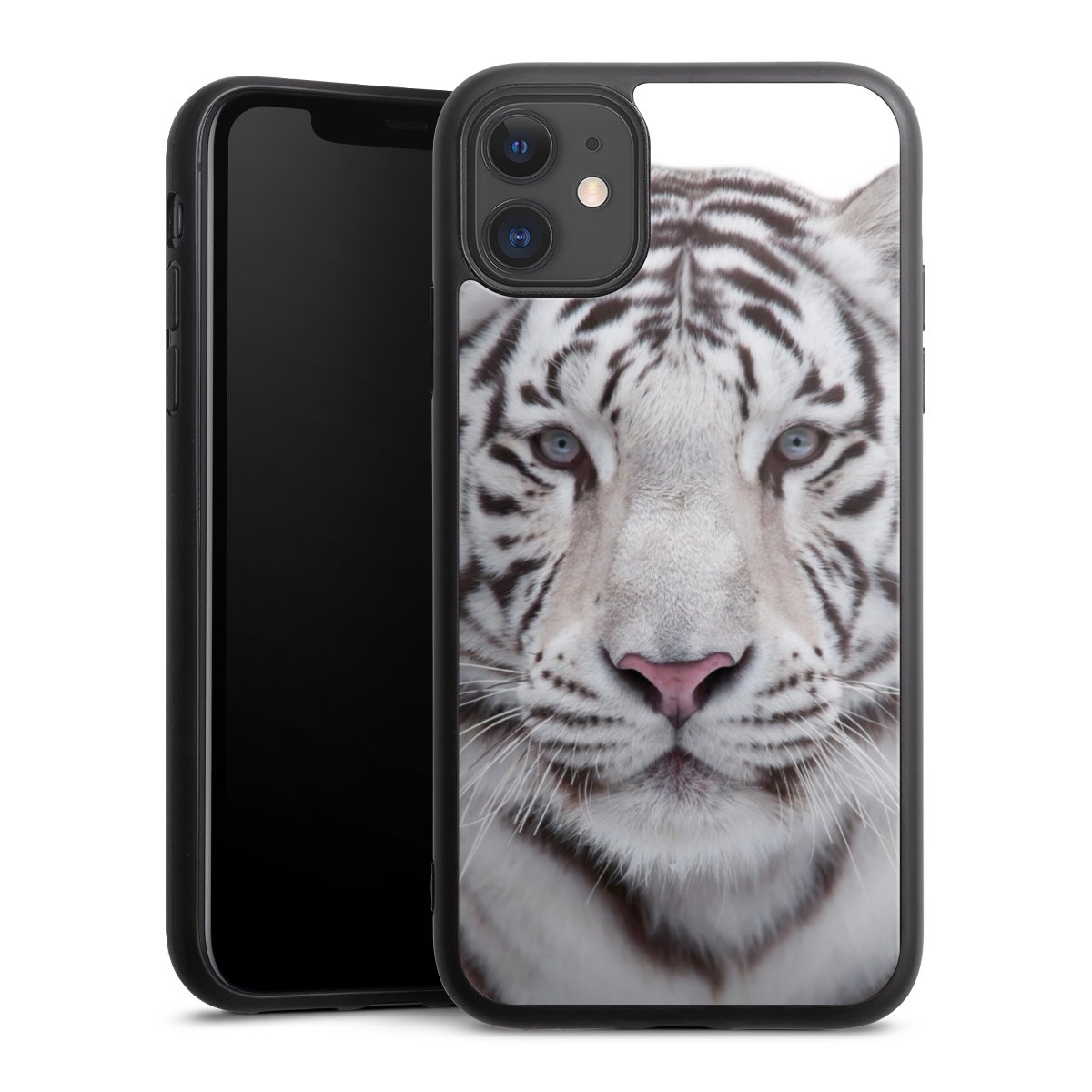 We print your design on the back of the glass inlay and then connect it firmly to the silicone case ,so that nothing sticks out and everything looks like it was cast from one piece. In addition, the sturdy glass element is protected from scratches by an additional coating and ensures a slight reflection on the shiny print image.