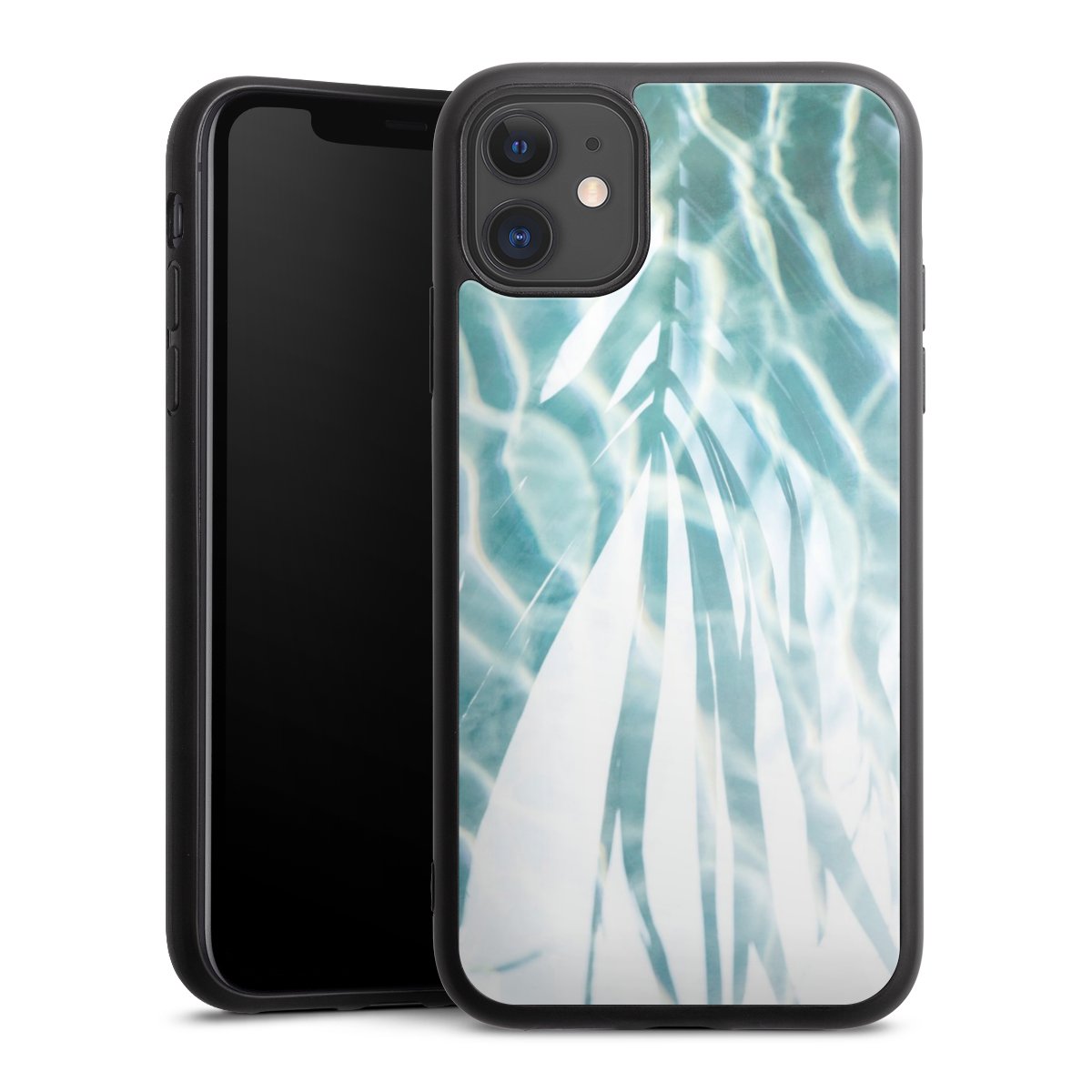 We print your design on the back of the glass inlay and then connect it firmly to the silicone case ,so that nothing sticks out and everything looks like it was cast from one piece. In addition, the sturdy glass element is protected from scratches by an additional coating and ensures a slight reflection on the shiny print image.