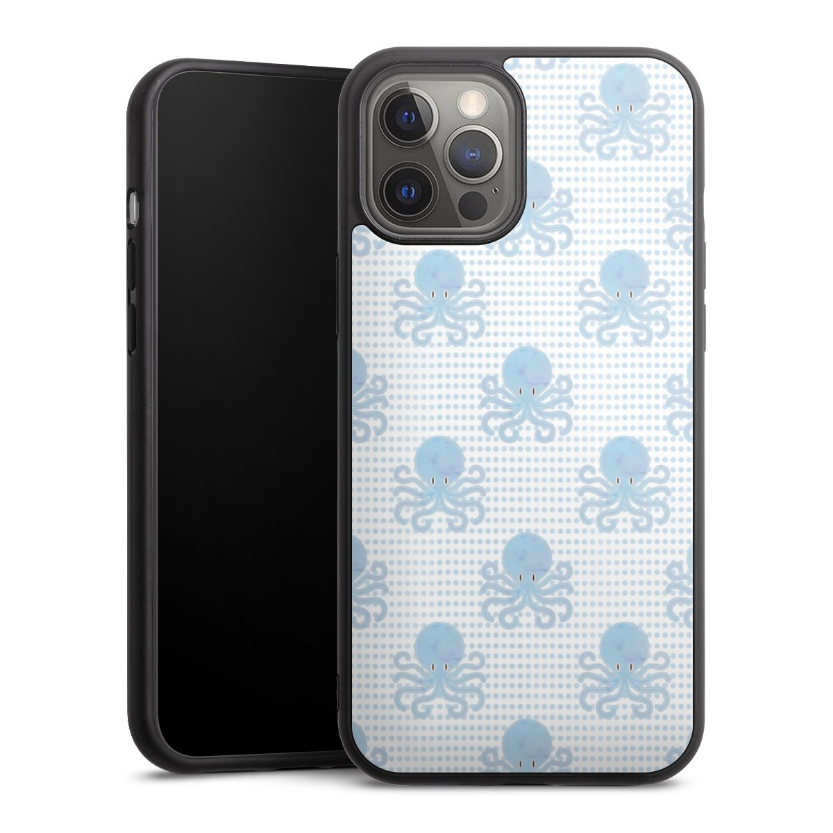 We print your design on the back of the glass inlay and then connect it firmly to the silicone case ,so that nothing sticks out and everything looks like it was cast from one piece. In addition, the sturdy glass element is protected from scratches by an additional coating and ensures a slight reflection on the shiny print image.