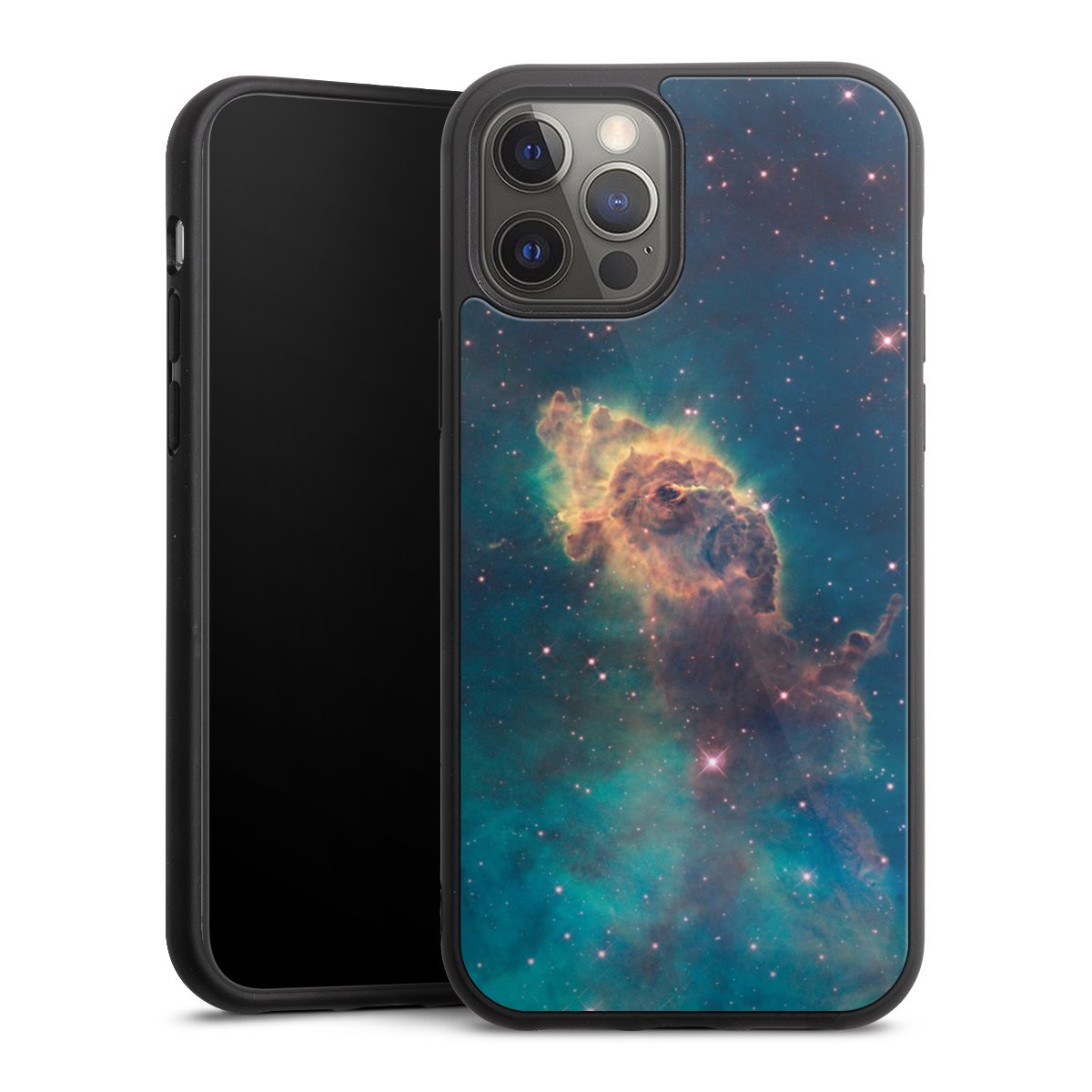 We print your design on the back of the glass inlay and then connect it firmly to the silicone case ,so that nothing sticks out and everything looks like it was cast from one piece. In addition, the sturdy glass element is protected from scratches by an additional coating and ensures a slight reflection on the shiny print image.