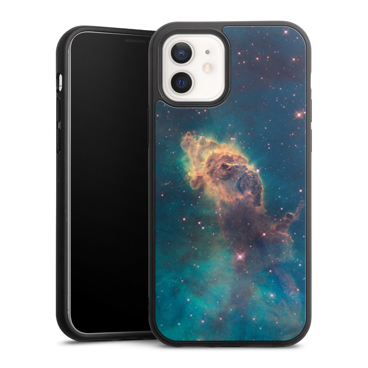 We print your design on the back of the glass inlay and then connect it firmly to the silicone case ,so that nothing sticks out and everything looks like it was cast from one piece. In addition, the sturdy glass element is protected from scratches by an additional coating and ensures a slight reflection on the shiny print image.