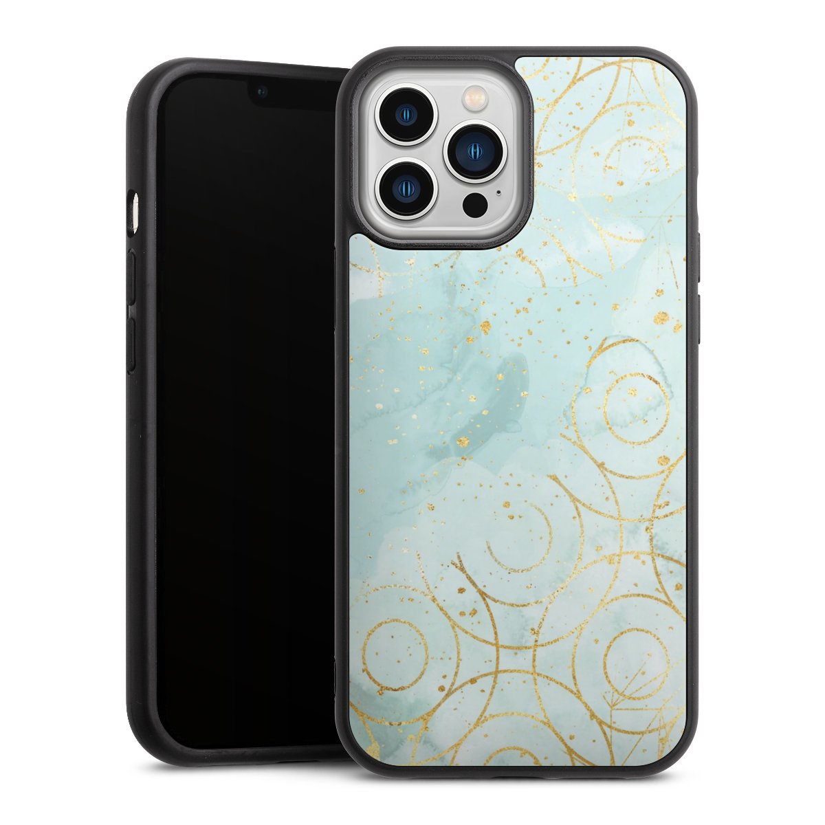 We print your design on the back of the glass inlay and then connect it firmly to the silicone case ,so that nothing sticks out and everything looks like it was cast from one piece. In addition, the sturdy glass element is protected from scratches by an additional coating and ensures a slight reflection on the shiny print image.