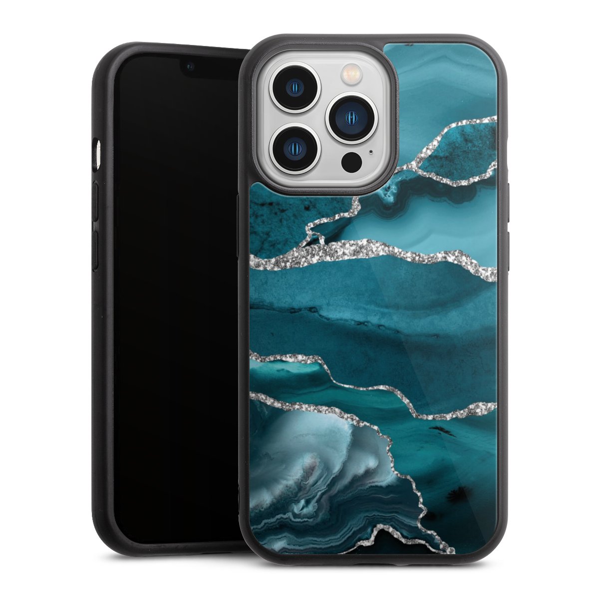 We print your design on the back of the glass inlay and then connect it firmly to the silicone case ,so that nothing sticks out and everything looks like it was cast from one piece. In addition, the sturdy glass element is protected from scratches by an additional coating and ensures a slight reflection on the shiny print image.