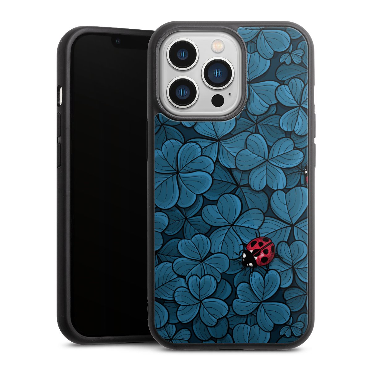 We print your design on the back of the glass inlay and then connect it firmly to the silicone case ,so that nothing sticks out and everything looks like it was cast from one piece. In addition, the sturdy glass element is protected from scratches by an additional coating and ensures a slight reflection on the shiny print image.