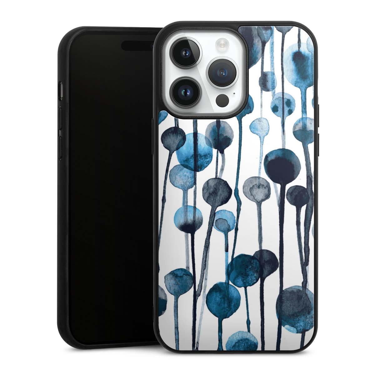 We print your design on the back of the glass inlay and then connect it firmly to the silicone case ,so that nothing sticks out and everything looks like it was cast from one piece. In addition, the sturdy glass element is protected from scratches by an additional coating and ensures a slight reflection on the shiny print image.