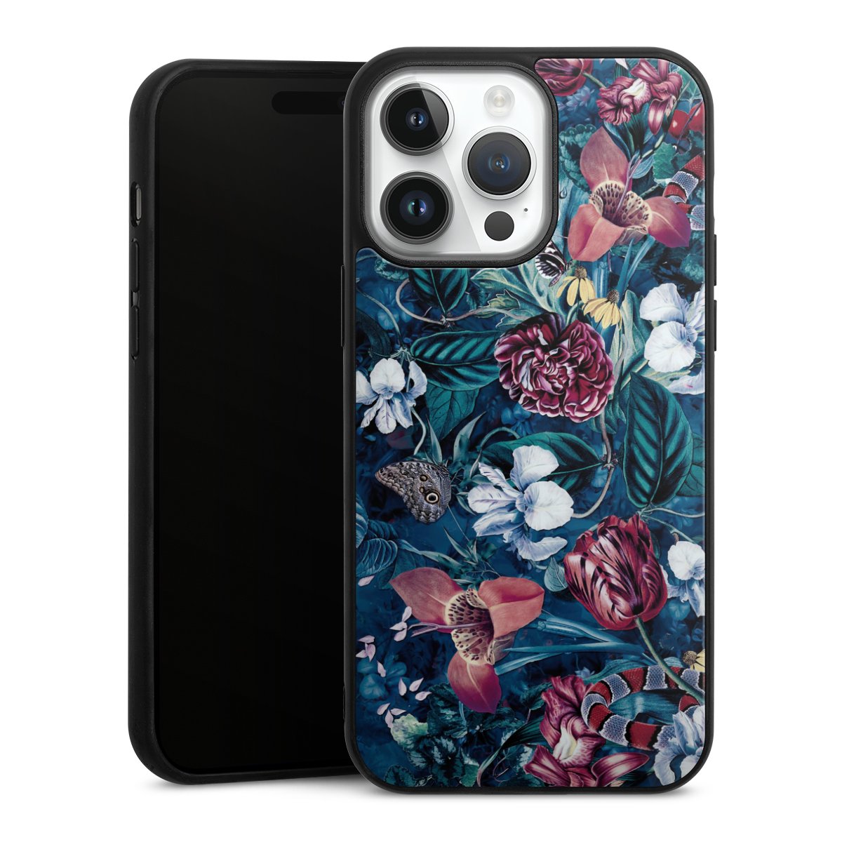 We print your design on the back of the glass inlay and then connect it firmly to the silicone case ,so that nothing sticks out and everything looks like it was cast from one piece. In addition, the sturdy glass element is protected from scratches by an additional coating and ensures a slight reflection on the shiny print image.