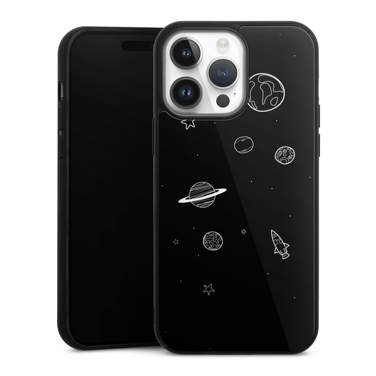 We print your design on the back of the glass inlay and then connect it firmly to the silicone case ,so that nothing sticks out and everything looks like it was cast from one piece. In addition, the sturdy glass element is protected from scratches by an additional coating and ensures a slight reflection on the shiny print image.
