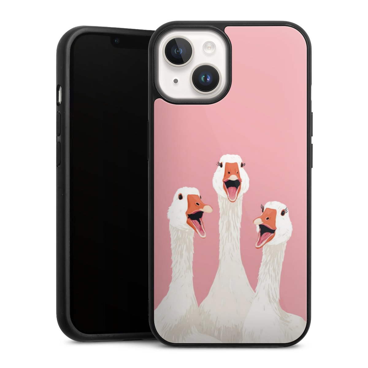 We print your design on the back of the glass inlay and then connect it firmly to the silicone case ,so that nothing sticks out and everything looks like it was cast from one piece. In addition, the sturdy glass element is protected from scratches by an additional coating and ensures a slight reflection on the shiny print image.