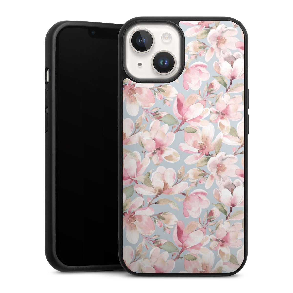 We print your design on the back of the glass inlay and then connect it firmly to the silicone case ,so that nothing sticks out and everything looks like it was cast from one piece. In addition, the sturdy glass element is protected from scratches by an additional coating and ensures a slight reflection on the shiny print image.