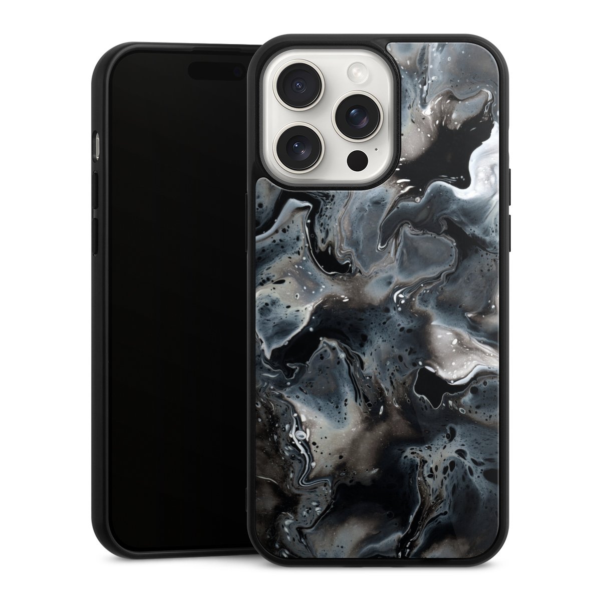 We print your design on the back of the glass inlay and then connect it firmly to the silicone case ,so that nothing sticks out and everything looks like it was cast from one piece. In addition, the sturdy glass element is protected from scratches by an additional coating and ensures a slight reflection on the shiny print image.