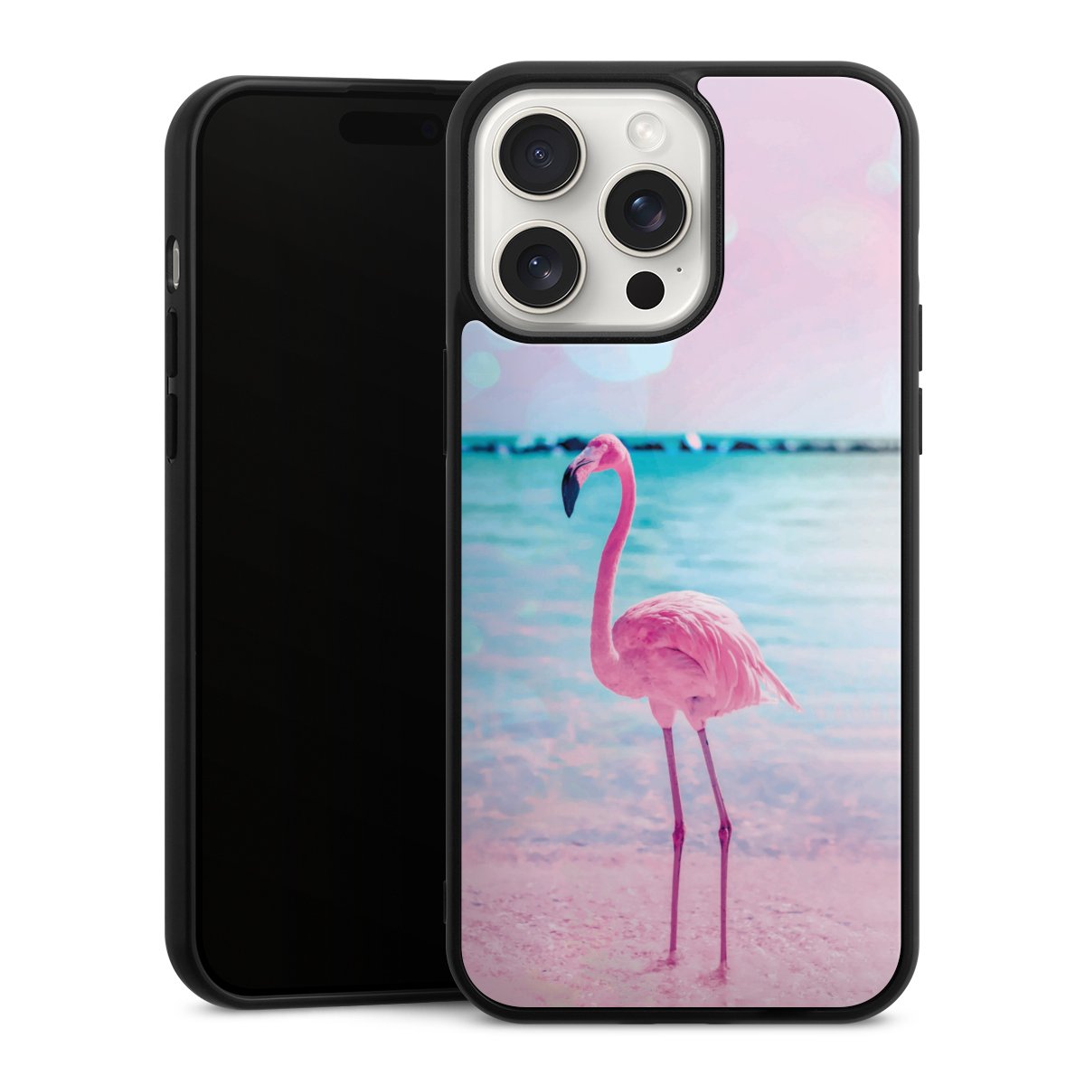 We print your design on the back of the glass inlay and then connect it firmly to the silicone case ,so that nothing sticks out and everything looks like it was cast from one piece. In addition, the sturdy glass element is protected from scratches by an additional coating and ensures a slight reflection on the shiny print image.