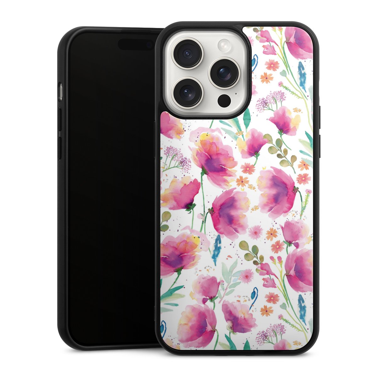 We print your design on the back of the glass inlay and then connect it firmly to the silicone case ,so that nothing sticks out and everything looks like it was cast from one piece. In addition, the sturdy glass element is protected from scratches by an additional coating and ensures a slight reflection on the shiny print image.