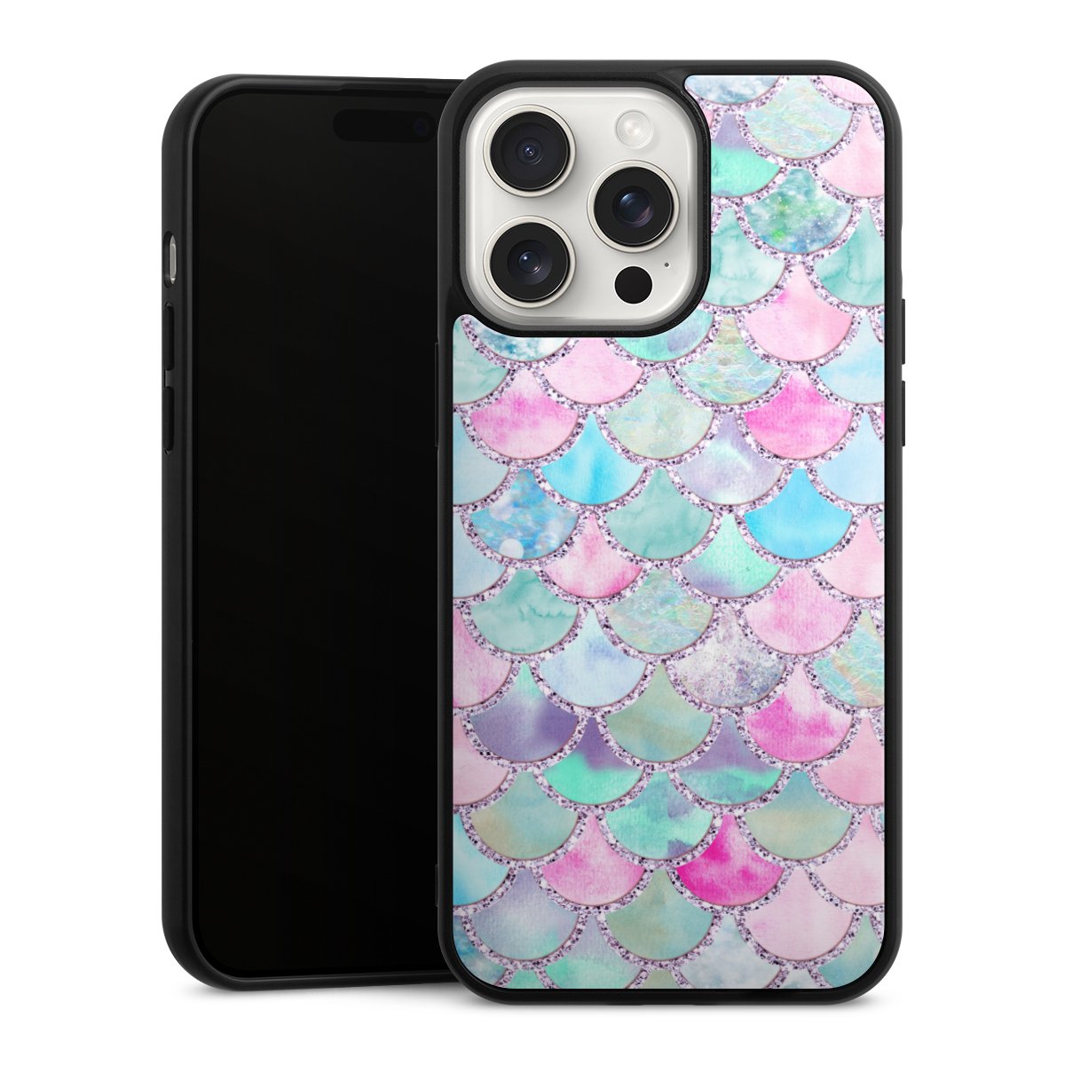 We print your design on the back of the glass inlay and then connect it firmly to the silicone case ,so that nothing sticks out and everything looks like it was cast from one piece. In addition, the sturdy glass element is protected from scratches by an additional coating and ensures a slight reflection on the shiny print image.