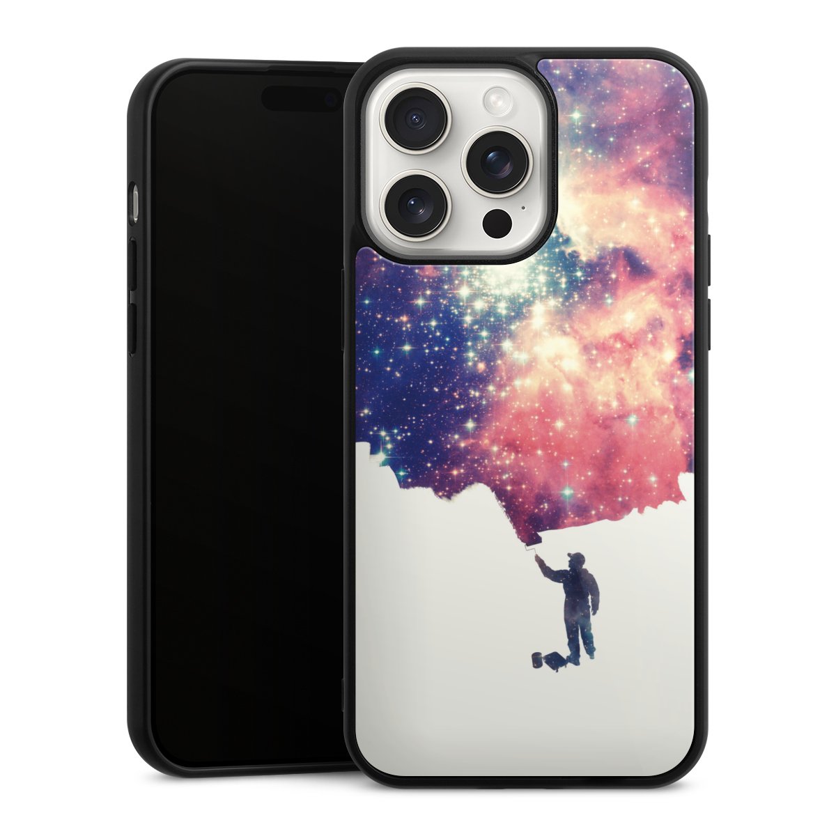 We print your design on the back of the glass inlay and then connect it firmly to the silicone case ,so that nothing sticks out and everything looks like it was cast from one piece. In addition, the sturdy glass element is protected from scratches by an additional coating and ensures a slight reflection on the shiny print image.