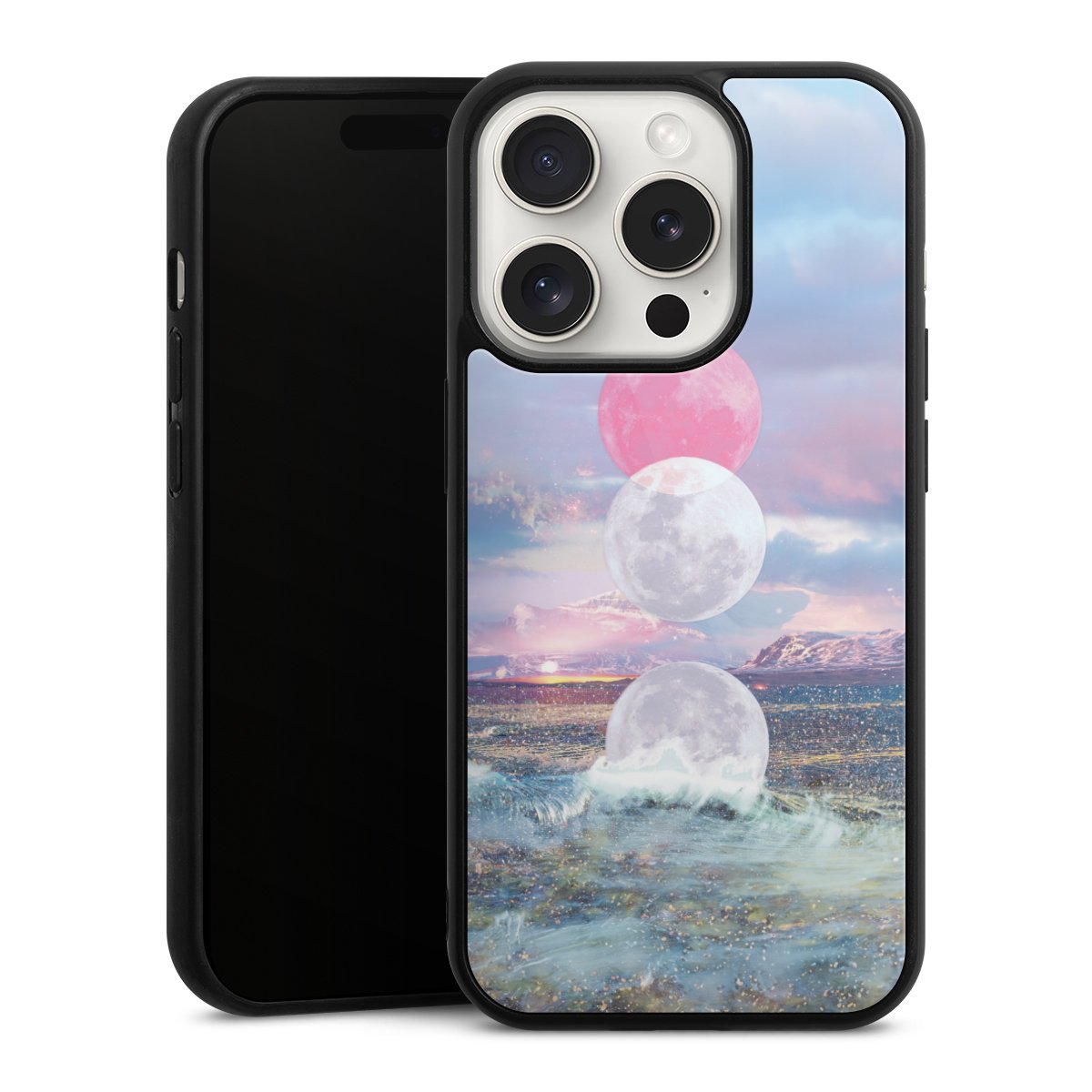 We print your design on the back of the glass inlay and then connect it firmly to the silicone case ,so that nothing sticks out and everything looks like it was cast from one piece. In addition, the sturdy glass element is protected from scratches by an additional coating and ensures a slight reflection on the shiny print image.