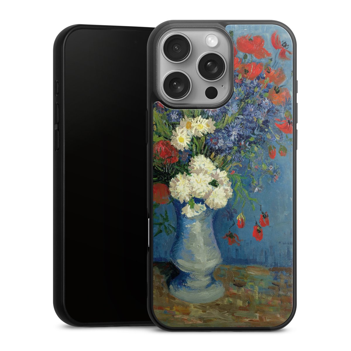 We print your design on the back of the glass inlay and then connect it firmly to the silicone case ,so that nothing sticks out and everything looks like it was cast from one piece. In addition, the sturdy glass element is protected from scratches by an additional coating and ensures a slight reflection on the shiny print image.