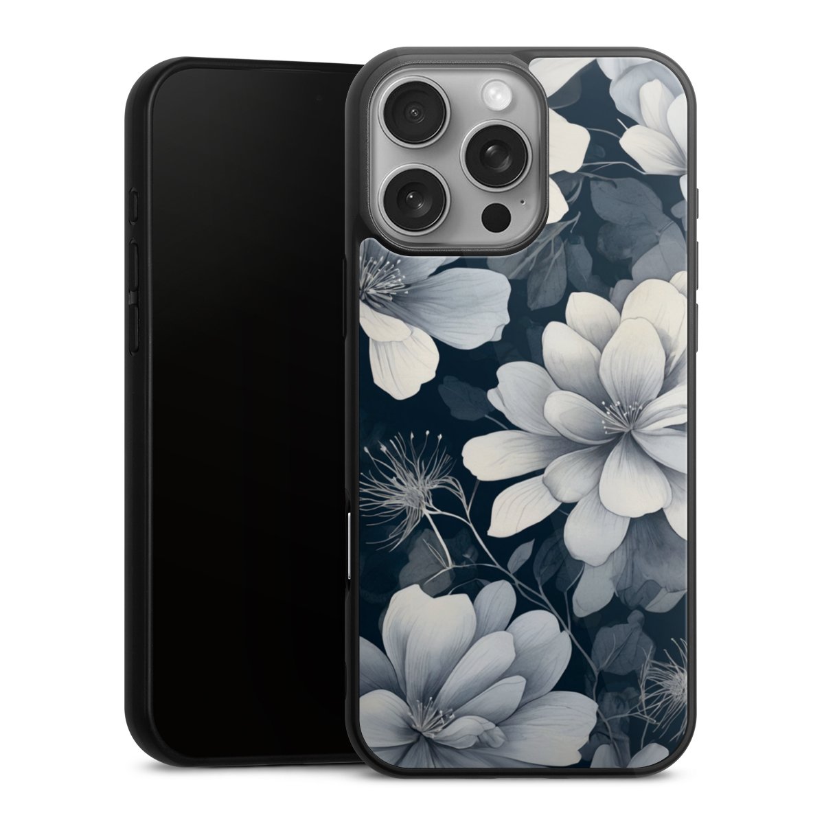 We print your design on the back of the glass inlay and then connect it firmly to the silicone case ,so that nothing sticks out and everything looks like it was cast from one piece. In addition, the sturdy glass element is protected from scratches by an additional coating and ensures a slight reflection on the shiny print image.