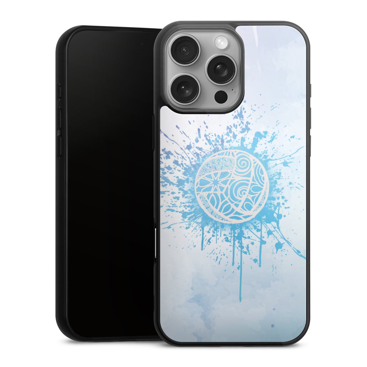 We print your design on the back of the glass inlay and then connect it firmly to the silicone case ,so that nothing sticks out and everything looks like it was cast from one piece. In addition, the sturdy glass element is protected from scratches by an additional coating and ensures a slight reflection on the shiny print image.