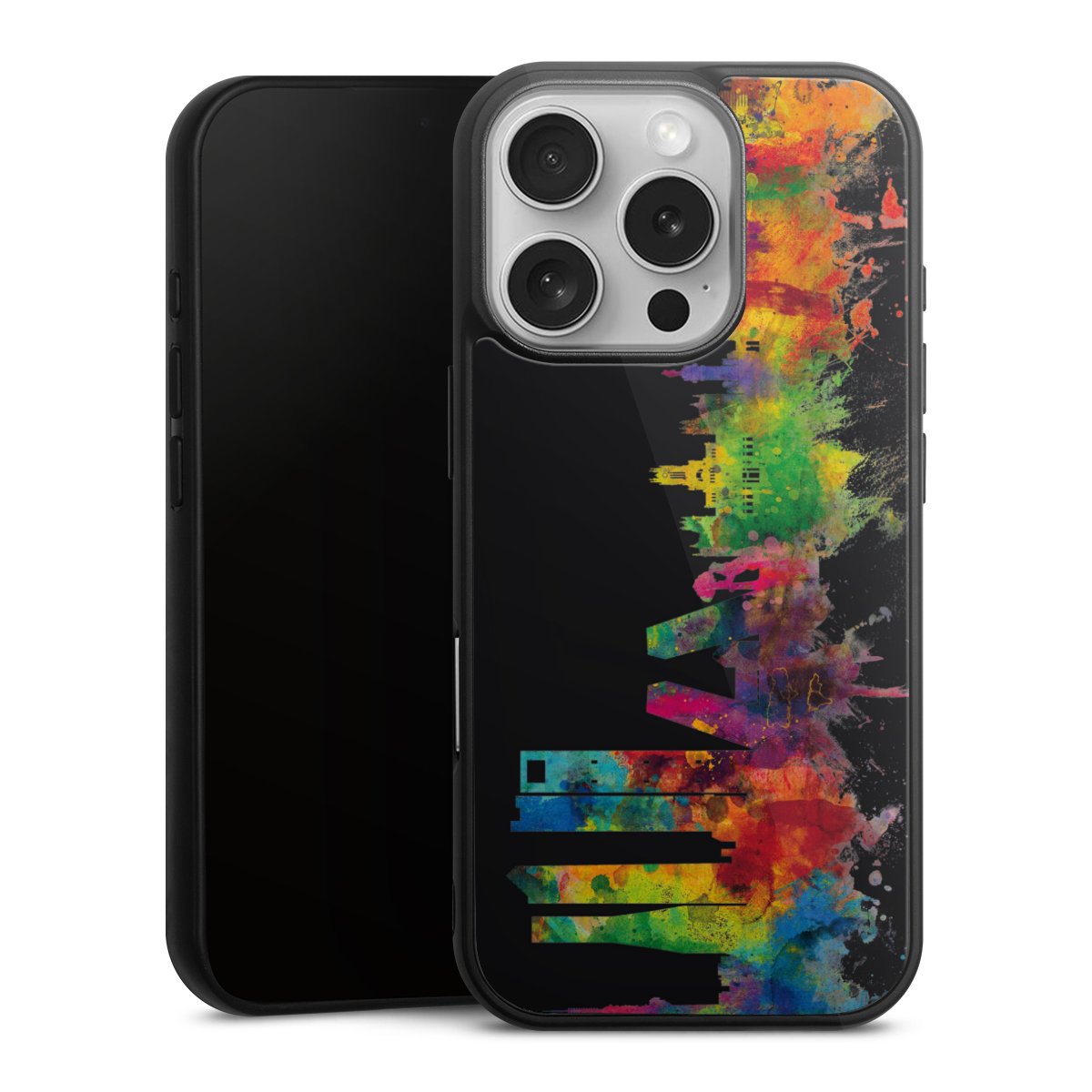 We print your design on the back of the glass inlay and then connect it firmly to the silicone case ,so that nothing sticks out and everything looks like it was cast from one piece. In addition, the sturdy glass element is protected from scratches by an additional coating and ensures a slight reflection on the shiny print image.
