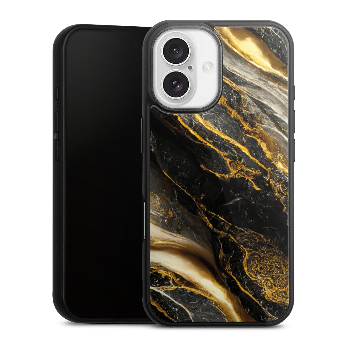 We print your design on the back of the glass inlay and then connect it firmly to the silicone case ,so that nothing sticks out and everything looks like it was cast from one piece. In addition, the sturdy glass element is protected from scratches by an additional coating and ensures a slight reflection on the shiny print image.
