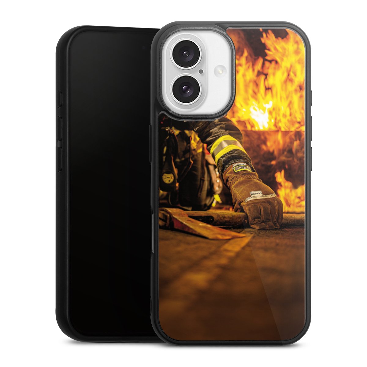 We print your design on the back of the glass inlay and then connect it firmly to the silicone case ,so that nothing sticks out and everything looks like it was cast from one piece. In addition, the sturdy glass element is protected from scratches by an additional coating and ensures a slight reflection on the shiny print image.