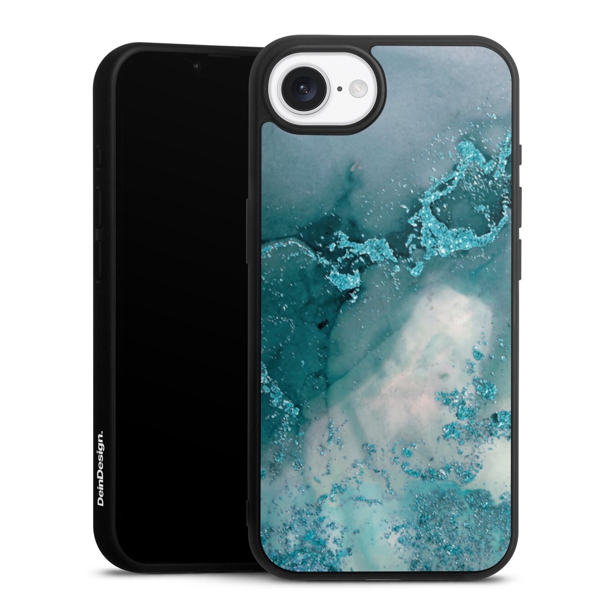We print your design on the back of the glass inlay and then connect it firmly to the silicone case ,so that nothing sticks out and everything looks like it was cast from one piece. In addition, the sturdy glass element is protected from scratches by an additional coating and ensures a slight reflection on the shiny print image.