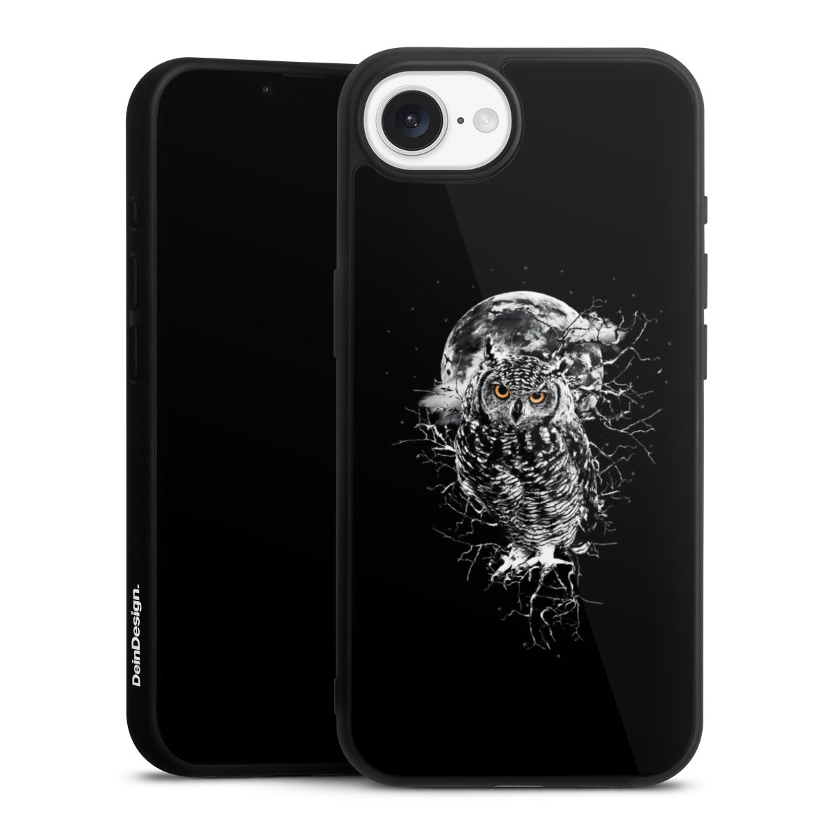 We print your design on the back of the glass inlay and then connect it firmly to the silicone case ,so that nothing sticks out and everything looks like it was cast from one piece. In addition, the sturdy glass element is protected from scratches by an additional coating and ensures a slight reflection on the shiny print image.