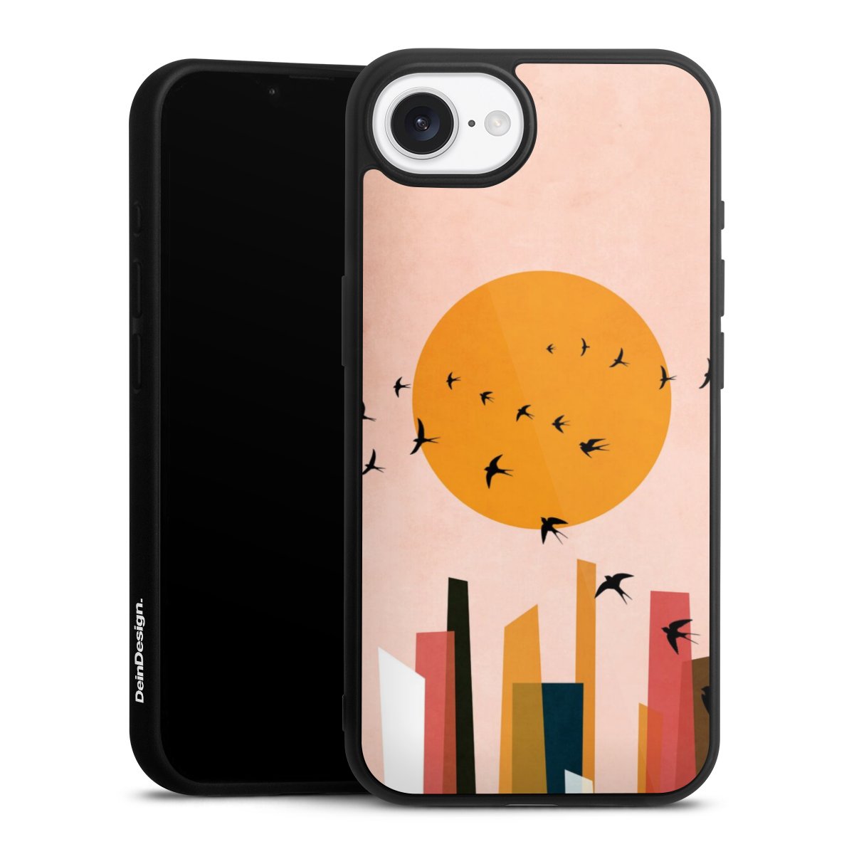 We print your design on the back of the glass inlay and then connect it firmly to the silicone case ,so that nothing sticks out and everything looks like it was cast from one piece. In addition, the sturdy glass element is protected from scratches by an additional coating and ensures a slight reflection on the shiny print image.