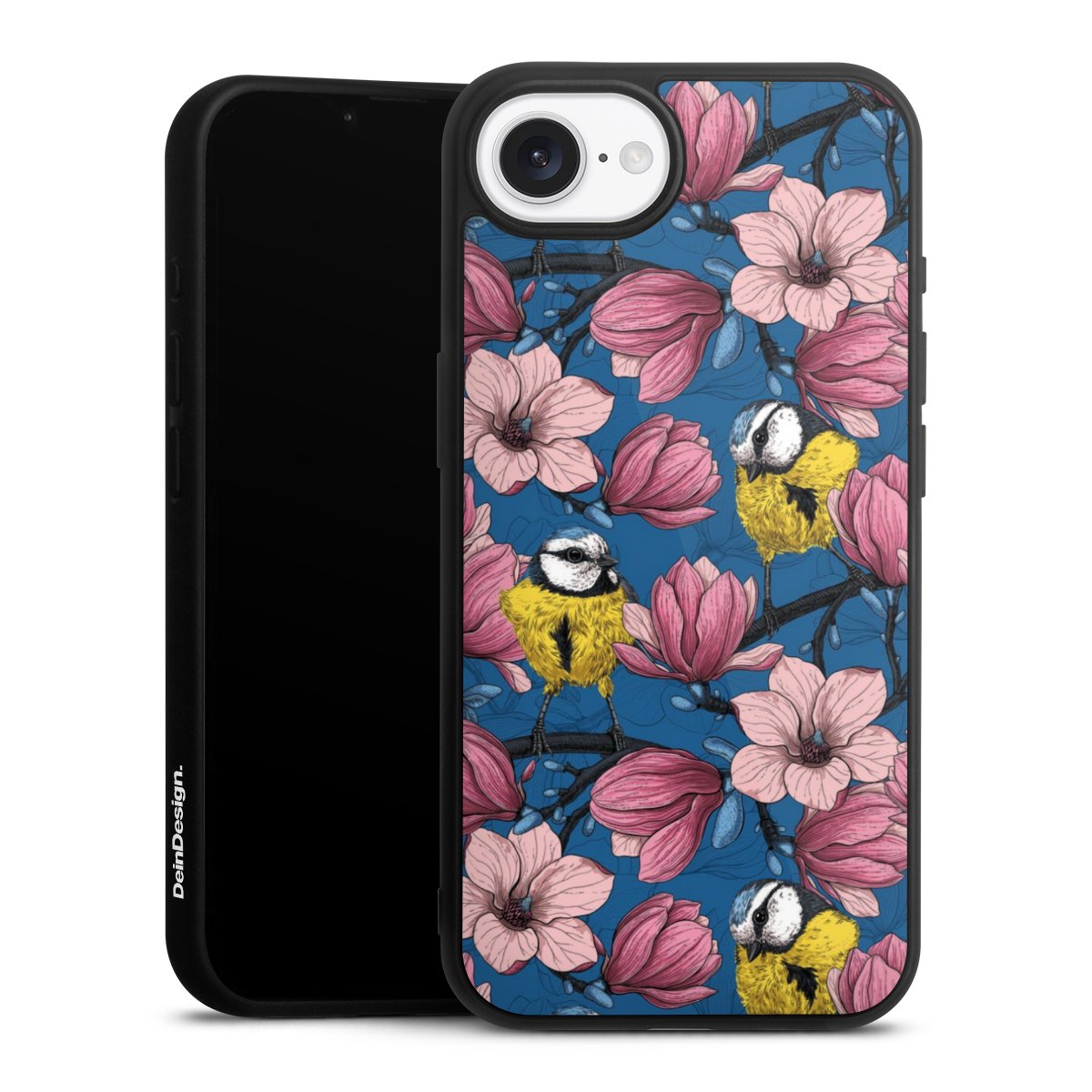 We print your design on the back of the glass inlay and then connect it firmly to the silicone case ,so that nothing sticks out and everything looks like it was cast from one piece. In addition, the sturdy glass element is protected from scratches by an additional coating and ensures a slight reflection on the shiny print image.