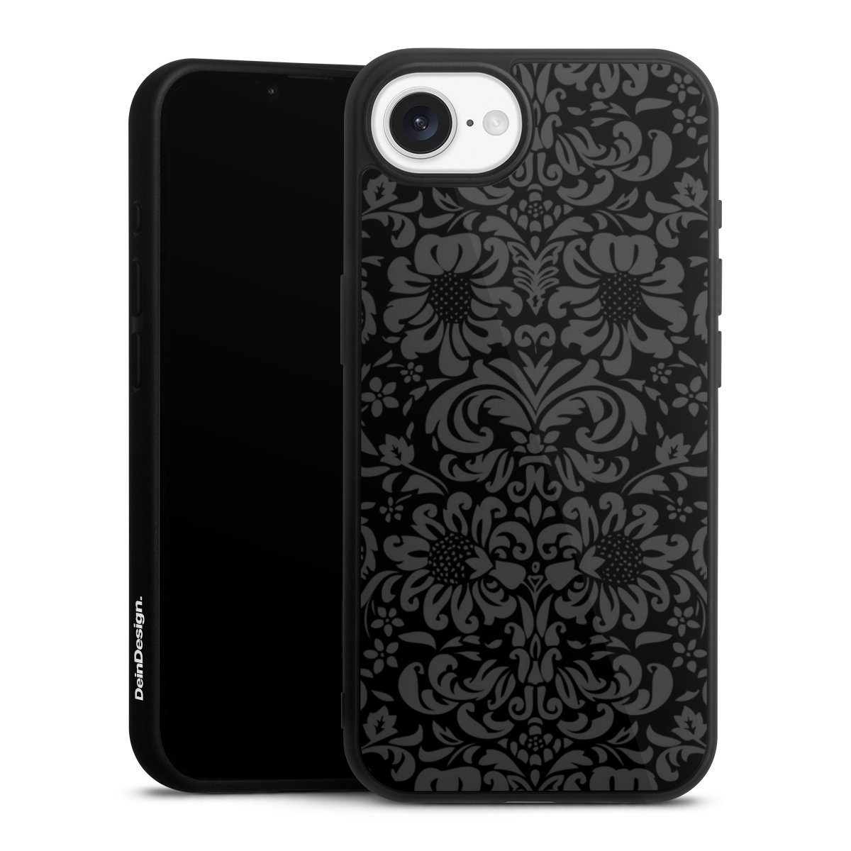 We print your design on the back of the glass inlay and then connect it firmly to the silicone case ,so that nothing sticks out and everything looks like it was cast from one piece. In addition, the sturdy glass element is protected from scratches by an additional coating and ensures a slight reflection on the shiny print image.