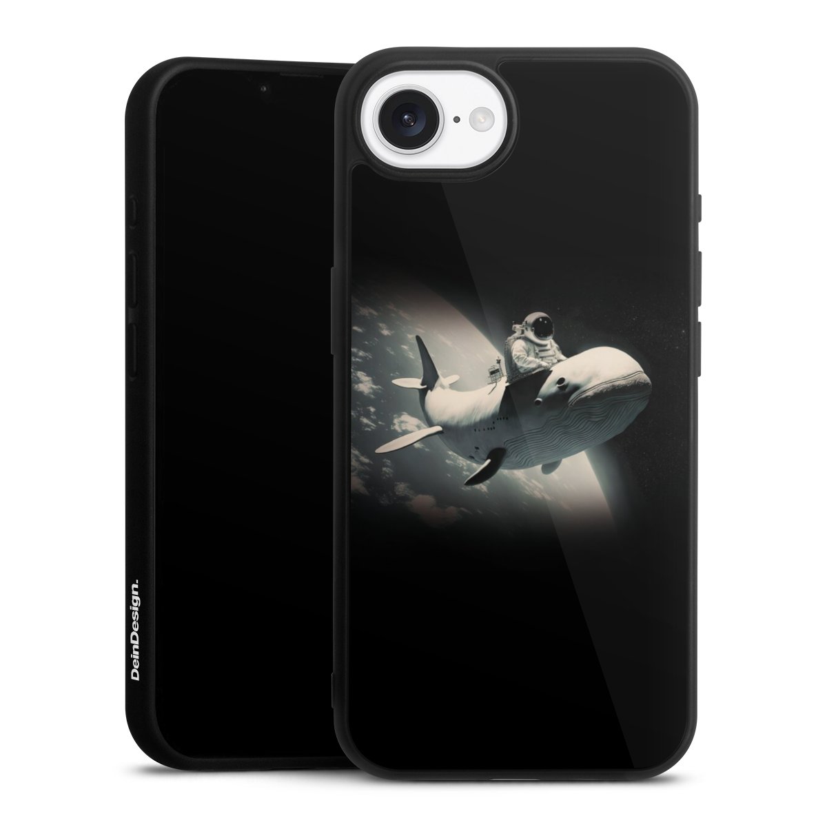 We print your design on the back of the glass inlay and then connect it firmly to the silicone case ,so that nothing sticks out and everything looks like it was cast from one piece. In addition, the sturdy glass element is protected from scratches by an additional coating and ensures a slight reflection on the shiny print image.