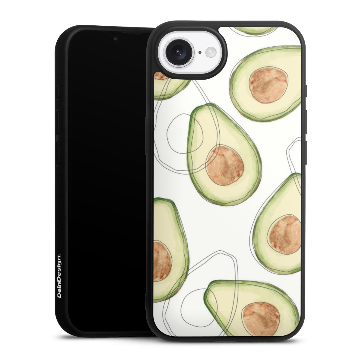 We print your design on the back of the glass inlay and then connect it firmly to the silicone case ,so that nothing sticks out and everything looks like it was cast from one piece. In addition, the sturdy glass element is protected from scratches by an additional coating and ensures a slight reflection on the shiny print image.