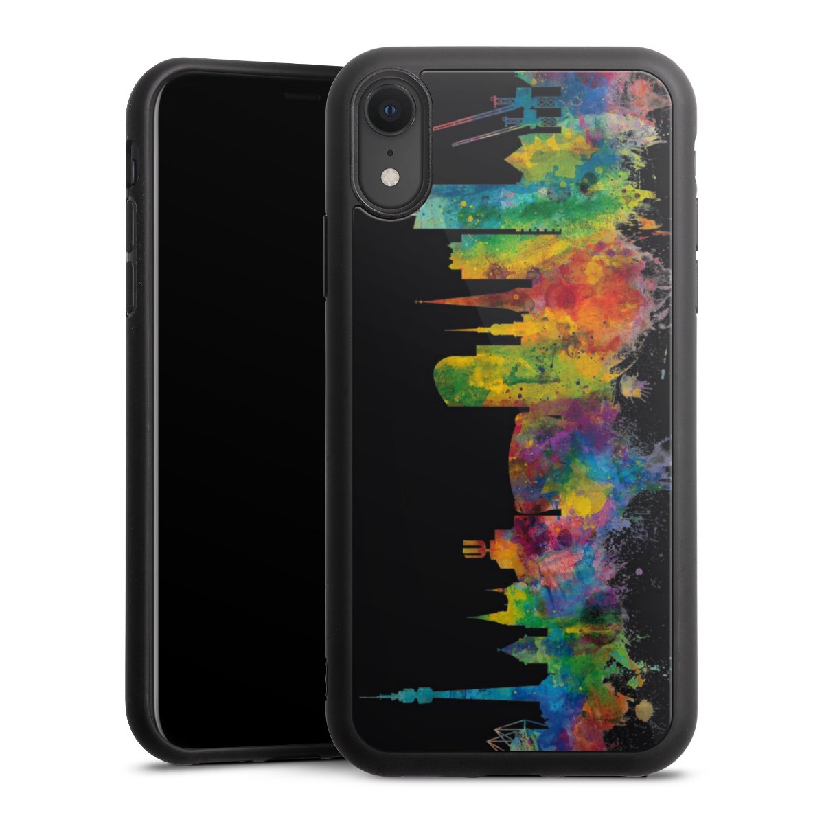 We print your design on the back of the glass inlay and then connect it firmly to the silicone case ,so that nothing sticks out and everything looks like it was cast from one piece. In addition, the sturdy glass element is protected from scratches by an additional coating and ensures a slight reflection on the shiny print image.