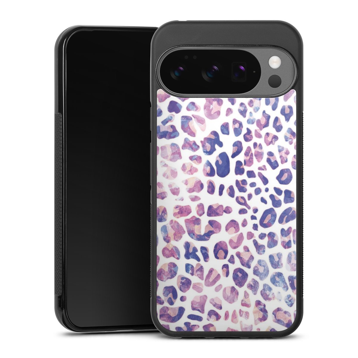 We print your design on the back of the glass inlay and then connect it firmly to the silicone case ,so that nothing sticks out and everything looks like it was cast from one piece. In addition, the sturdy glass element is protected from scratches by an additional coating and ensures a slight reflection on the shiny print image.