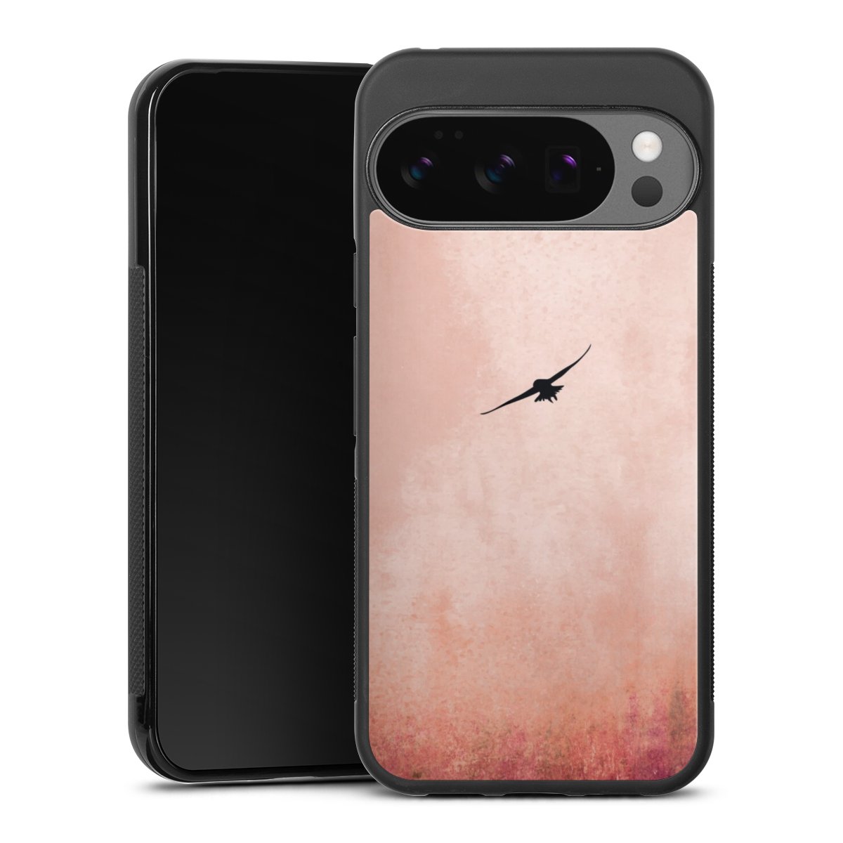 We print your design on the back of the glass inlay and then connect it firmly to the silicone case ,so that nothing sticks out and everything looks like it was cast from one piece. In addition, the sturdy glass element is protected from scratches by an additional coating and ensures a slight reflection on the shiny print image.
