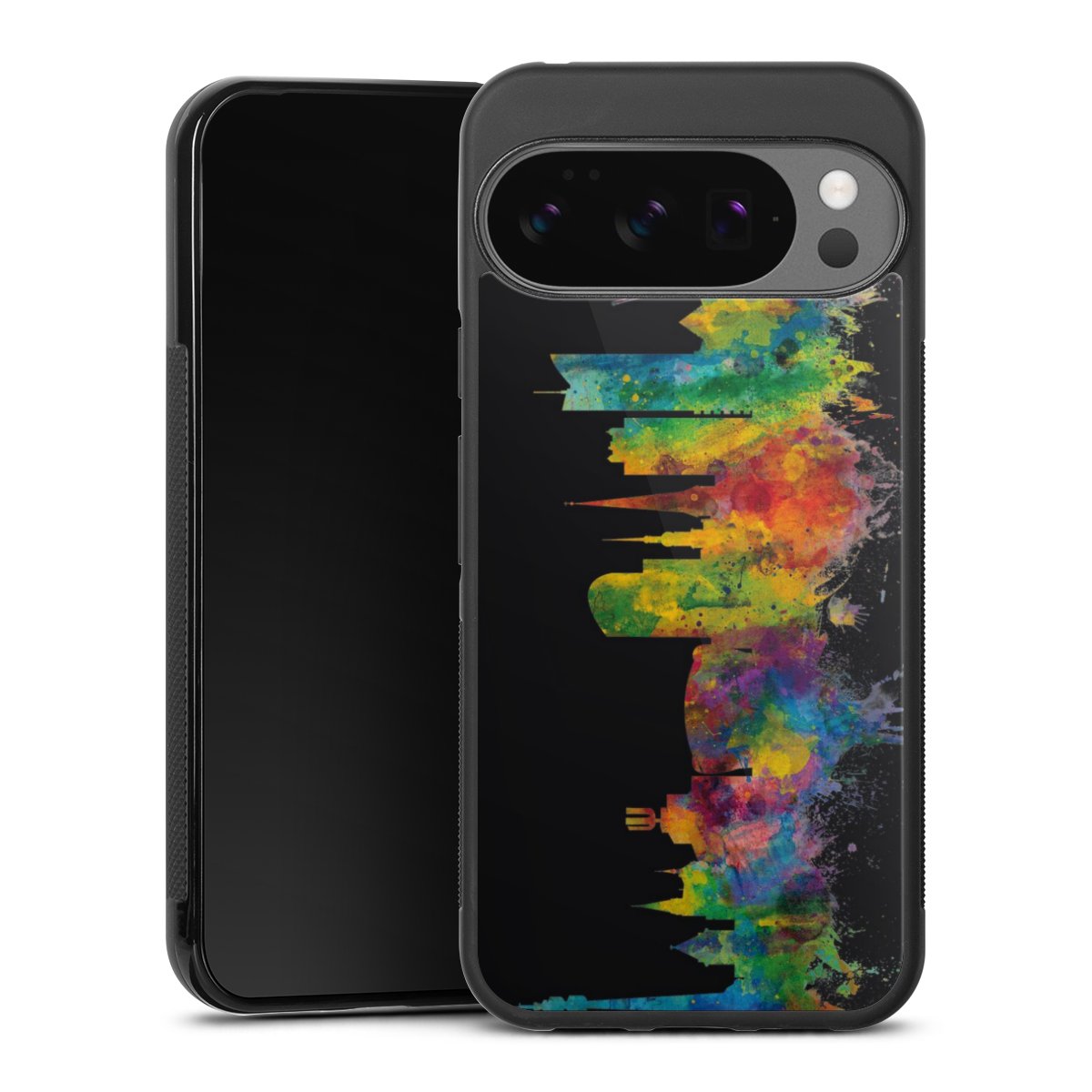 We print your design on the back of the glass inlay and then connect it firmly to the silicone case ,so that nothing sticks out and everything looks like it was cast from one piece. In addition, the sturdy glass element is protected from scratches by an additional coating and ensures a slight reflection on the shiny print image.