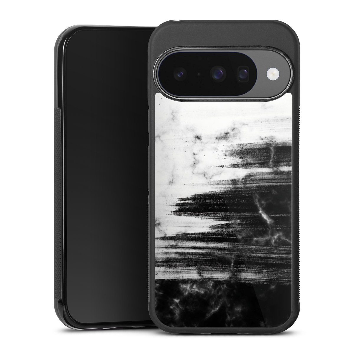 The contrast between the matte black TPU on the sides and the glossy glass surface not only makes the Gallery Case a fest for the eyes, but also a real treat for the hands: The glass gives the phone a pleasantly smooth back and the soft silicone edge provides the necessary grip.
