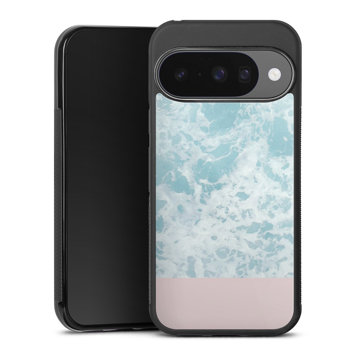 We print your design on the back of the glass inlay and then connect it firmly to the silicone case ,so that nothing sticks out and everything looks like it was cast from one piece. In addition, the sturdy glass element is protected from scratches by an additional coating and ensures a slight reflection on the shiny print image.