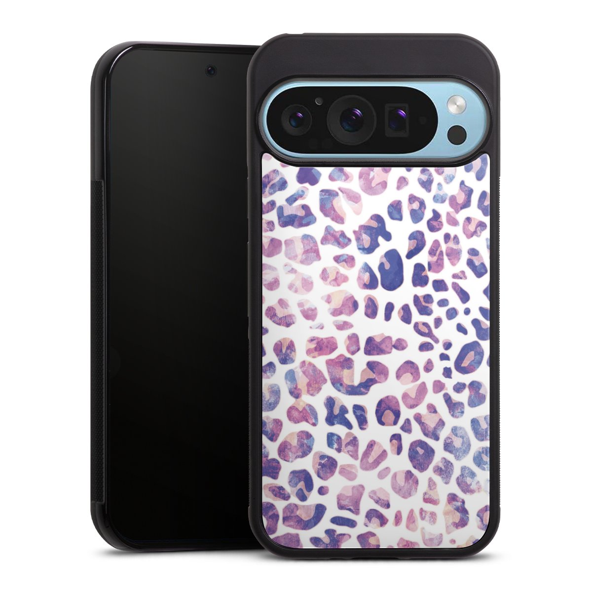 We print your design on the back of the glass inlay and then connect it firmly to the silicone case ,so that nothing sticks out and everything looks like it was cast from one piece. In addition, the sturdy glass element is protected from scratches by an additional coating and ensures a slight reflection on the shiny print image.