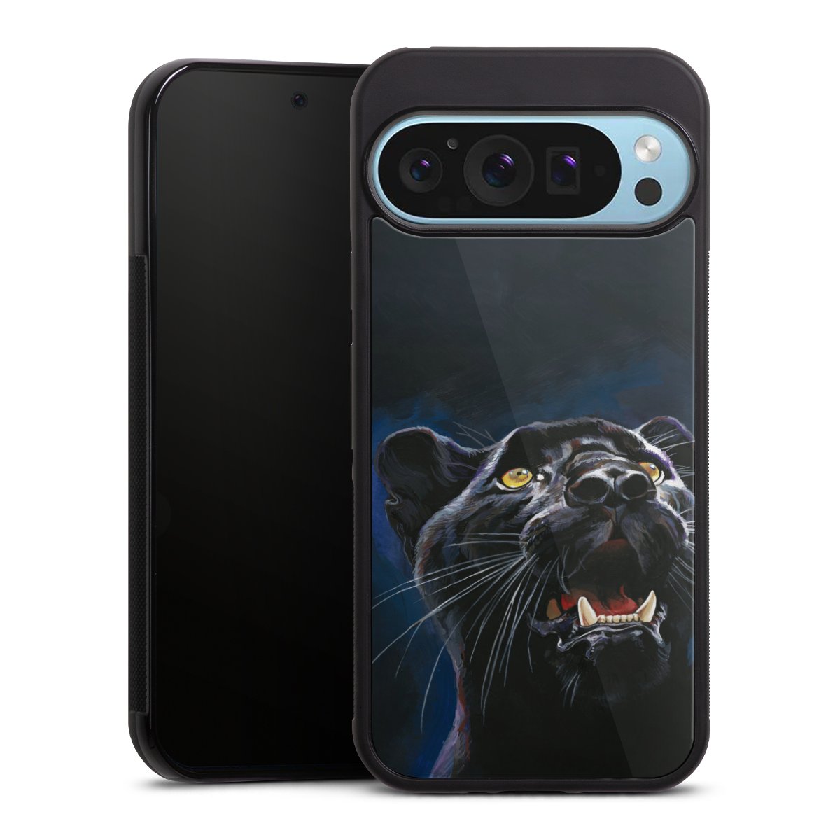 We print your design on the back of the glass inlay and then connect it firmly to the silicone case ,so that nothing sticks out and everything looks like it was cast from one piece. In addition, the sturdy glass element is protected from scratches by an additional coating and ensures a slight reflection on the shiny print image.