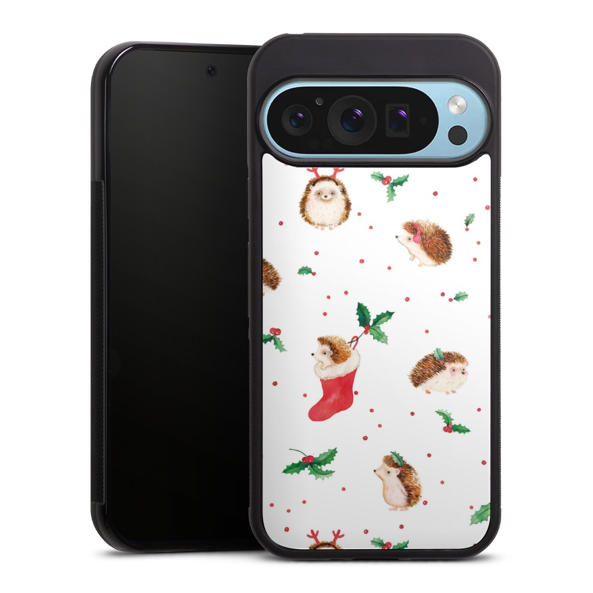 We print your design on the back of the glass inlay and then connect it firmly to the silicone case ,so that nothing sticks out and everything looks like it was cast from one piece. In addition, the sturdy glass element is protected from scratches by an additional coating and ensures a slight reflection on the shiny print image.