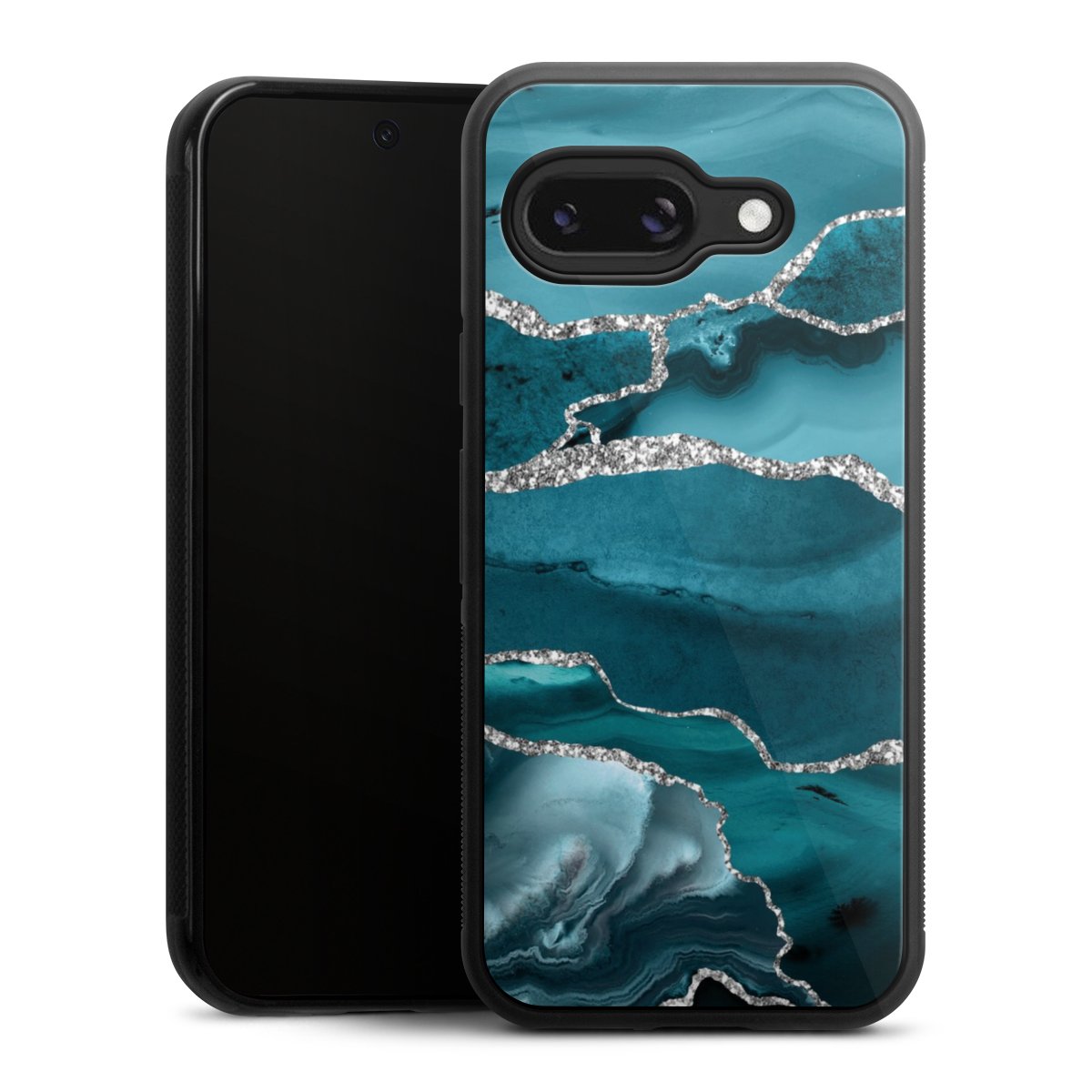 We print your design on the back of the glass inlay and then connect it firmly to the silicone case ,so that nothing sticks out and everything looks like it was cast from one piece. In addition, the sturdy glass element is protected from scratches by an additional coating and ensures a slight reflection on the shiny print image.