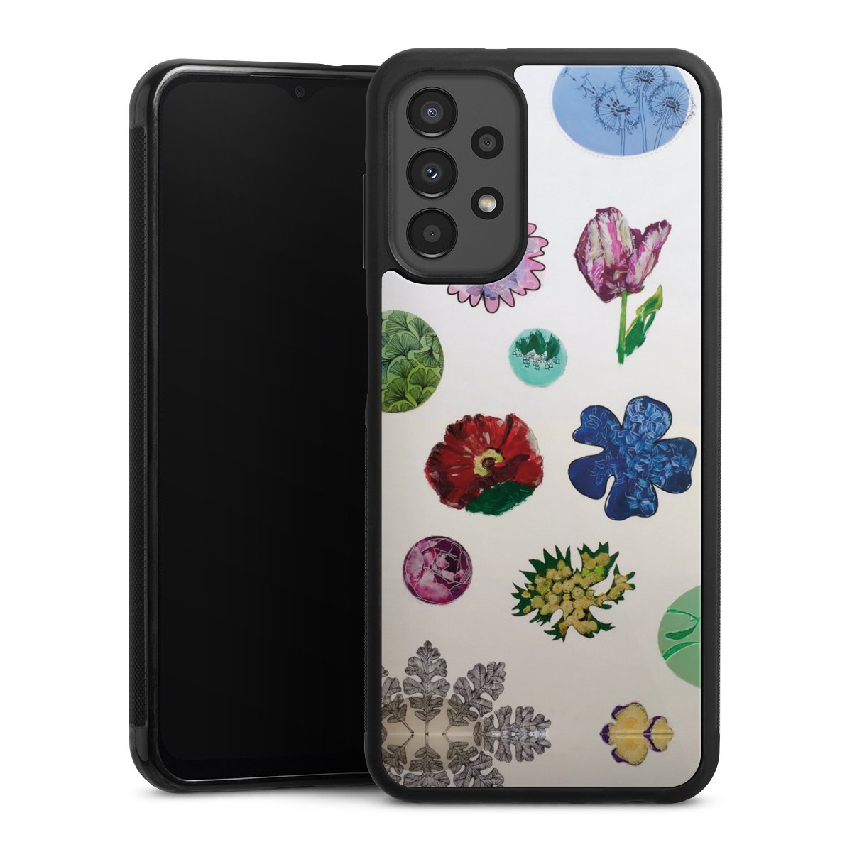 We print your design on the back of the glass inlay and then connect it firmly to the silicone case ,so that nothing sticks out and everything looks like it was cast from one piece. In addition, the sturdy glass element is protected from scratches by an additional coating and ensures a slight reflection on the shiny print image.