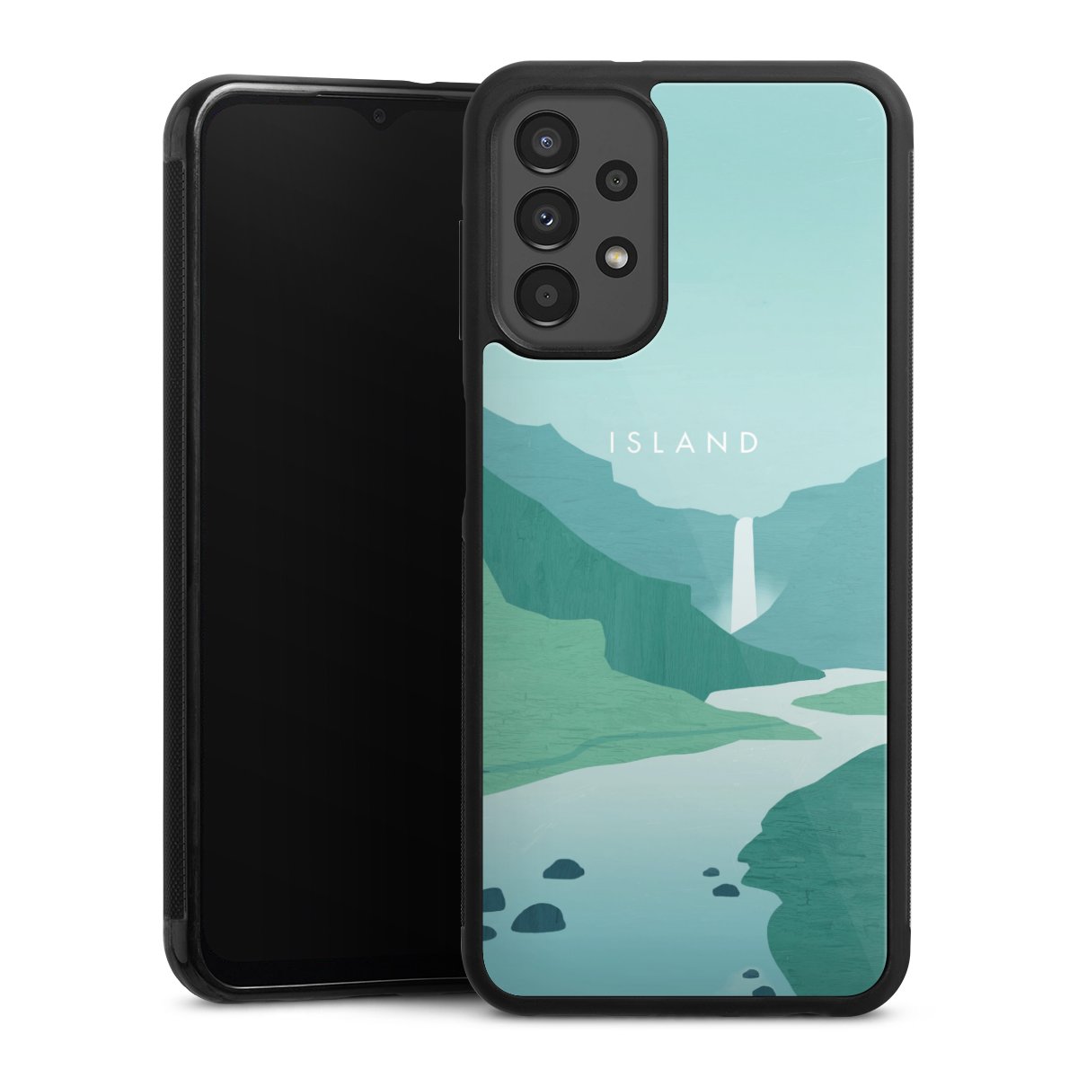 We print your design on the back of the glass inlay and then connect it firmly to the silicone case ,so that nothing sticks out and everything looks like it was cast from one piece. In addition, the sturdy glass element is protected from scratches by an additional coating and ensures a slight reflection on the shiny print image.