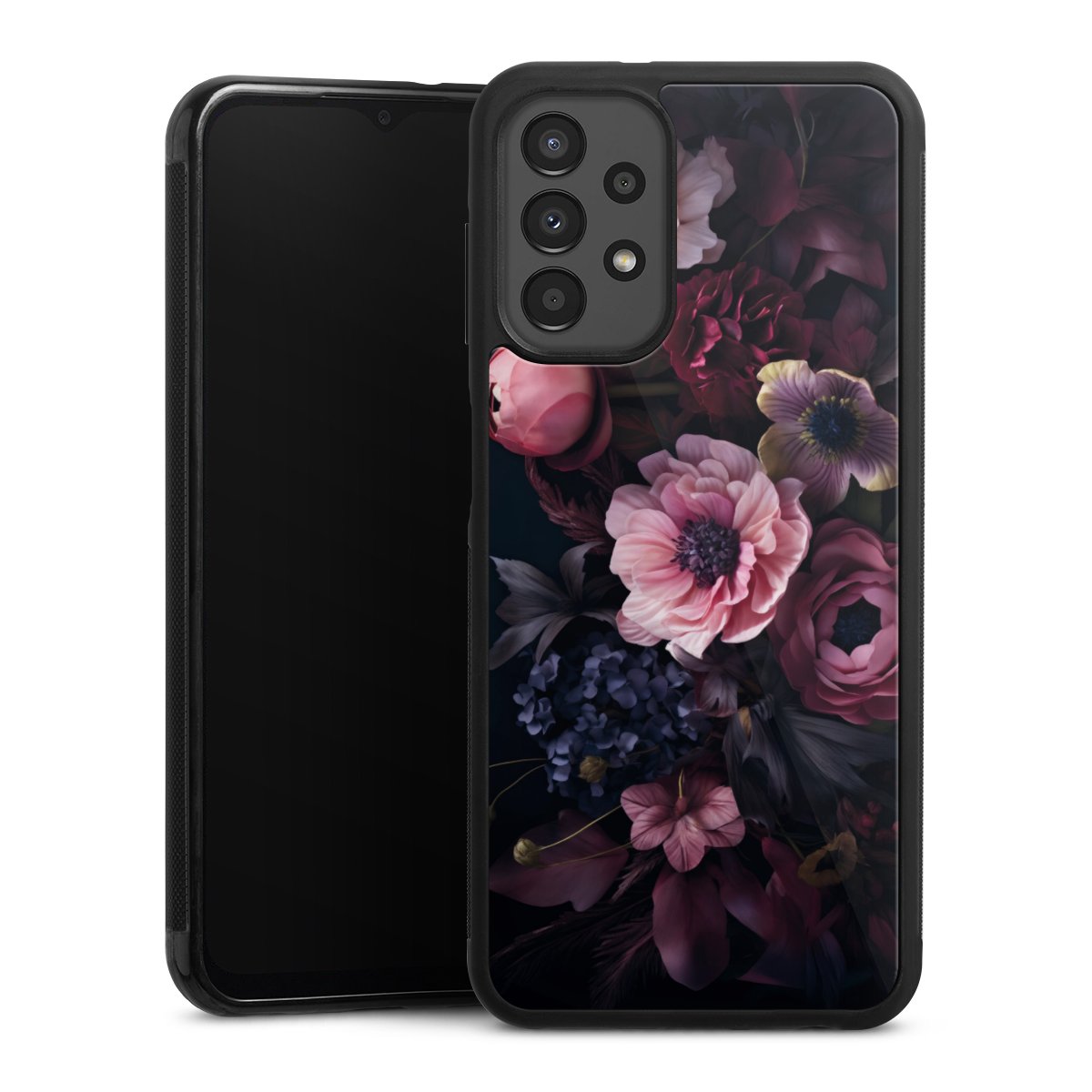 We print your design on the back of the glass inlay and then connect it firmly to the silicone case ,so that nothing sticks out and everything looks like it was cast from one piece. In addition, the sturdy glass element is protected from scratches by an additional coating and ensures a slight reflection on the shiny print image.