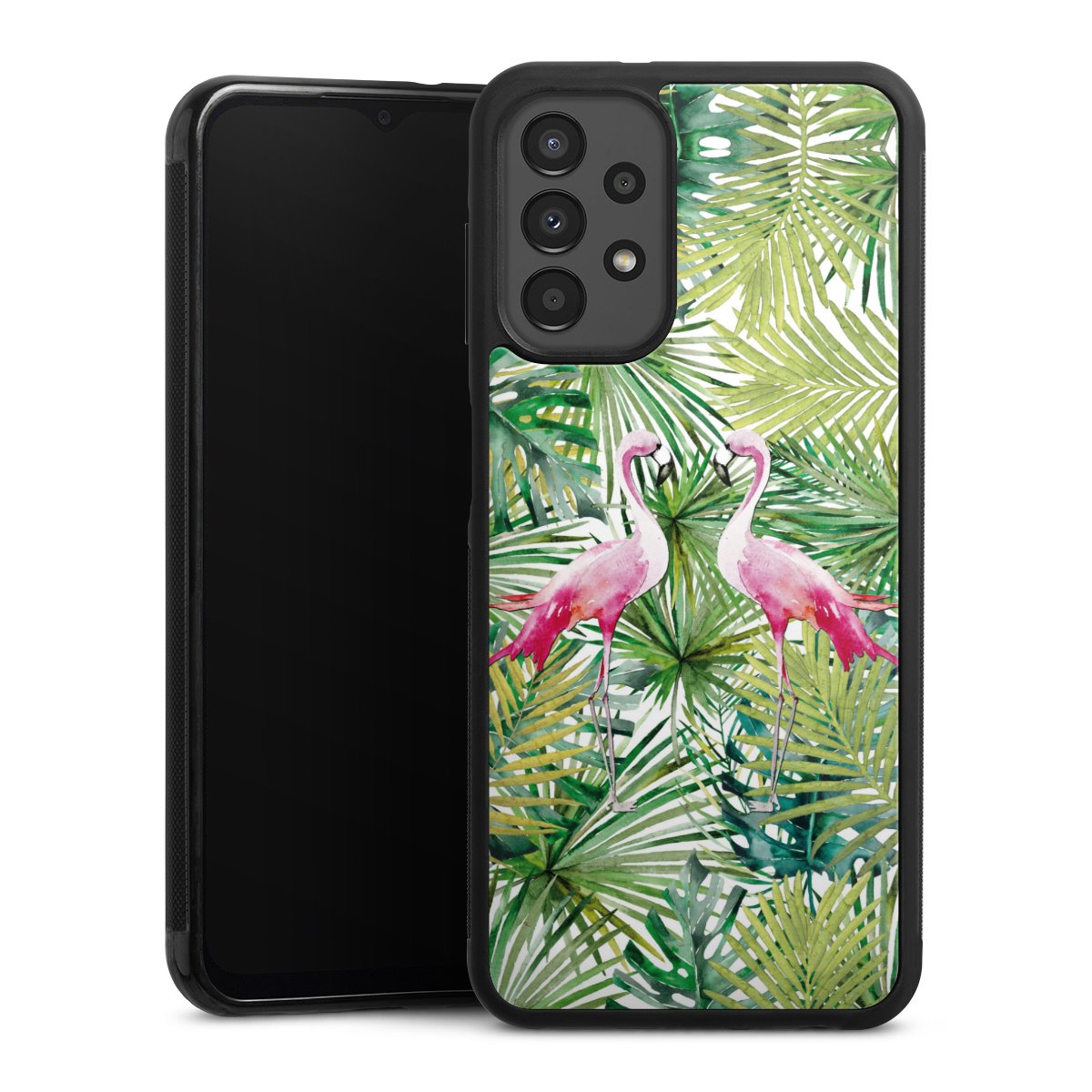 For this phone case, we use the solid direct printing process. The printing area covers the back of the glass plate, the edge of the case remains unprinted. The phone case can only be ordered fully printed. Choose for your design one of our exclusive designs or get creative and create your own design, for example with pictures and overlays. The choice is yours!