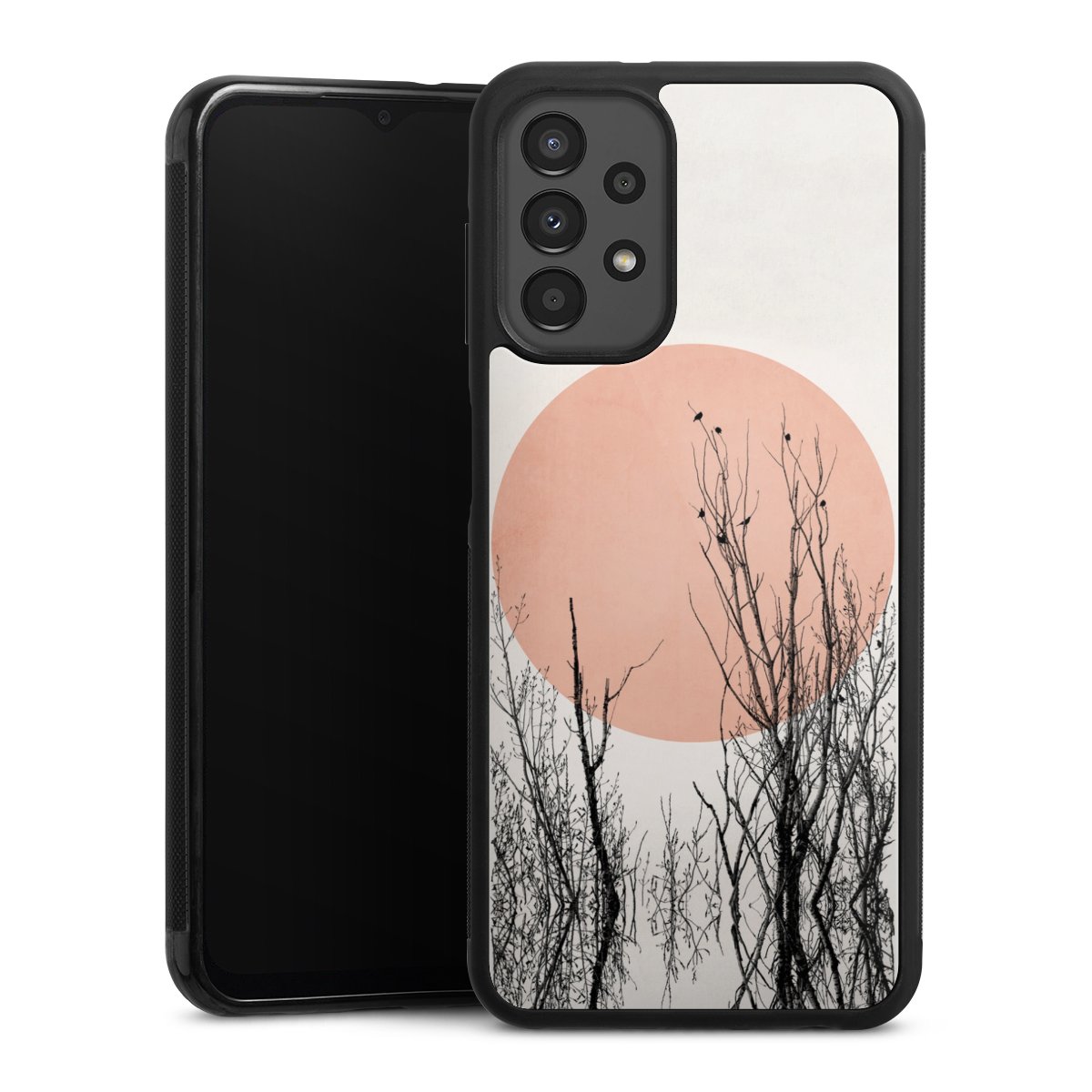 We print your design on the back of the glass inlay and then connect it firmly to the silicone case ,so that nothing sticks out and everything looks like it was cast from one piece. In addition, the sturdy glass element is protected from scratches by an additional coating and ensures a slight reflection on the shiny print image.